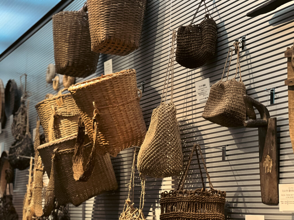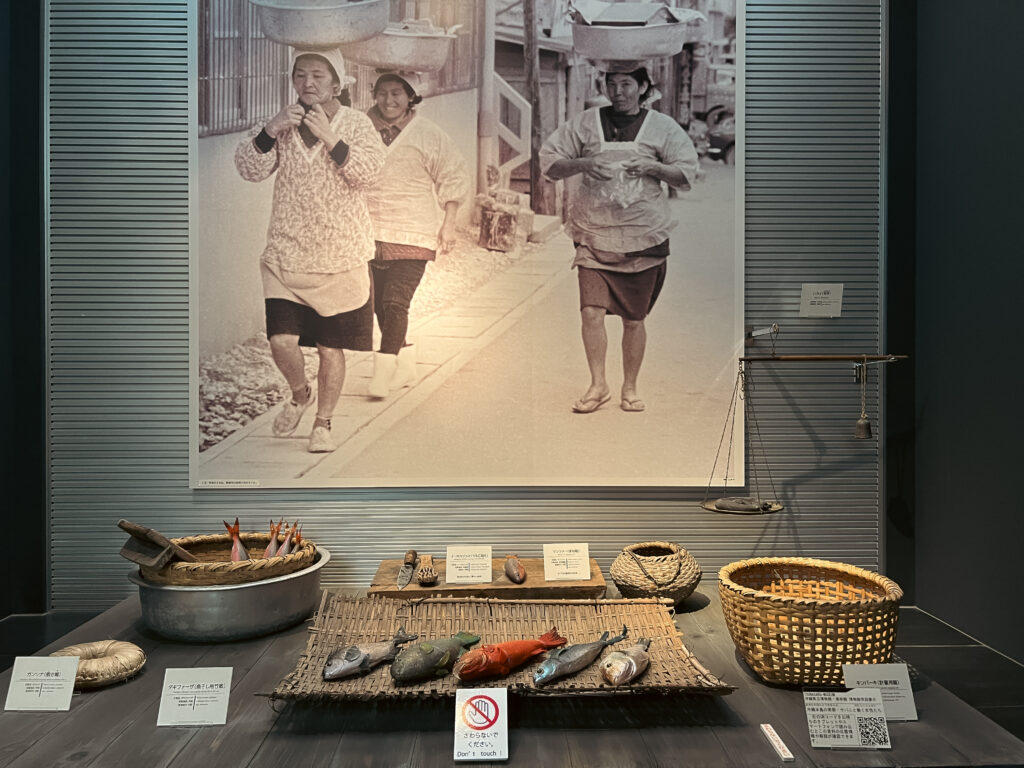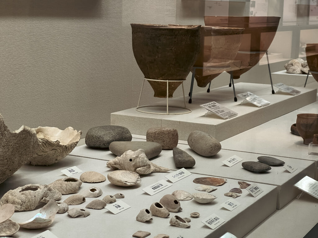 從自然與海洋的概述進入沖繩,到考古發現的港川人,進到文明開展的貝塚村落,可以看到這個民族深受海洋影響,曾利用貝殼製作出各種的器物,甚至還有貝刃。到琉球王國時代,與中國文化的交織,以及薩摩島津氏的侵略,使得琉球受到江戶幕府的控制等等。也因此,所展示的常民生活裡,可見沖繩亦有燒香、燒金紙的習俗,與台灣生活有不可思議的相似!