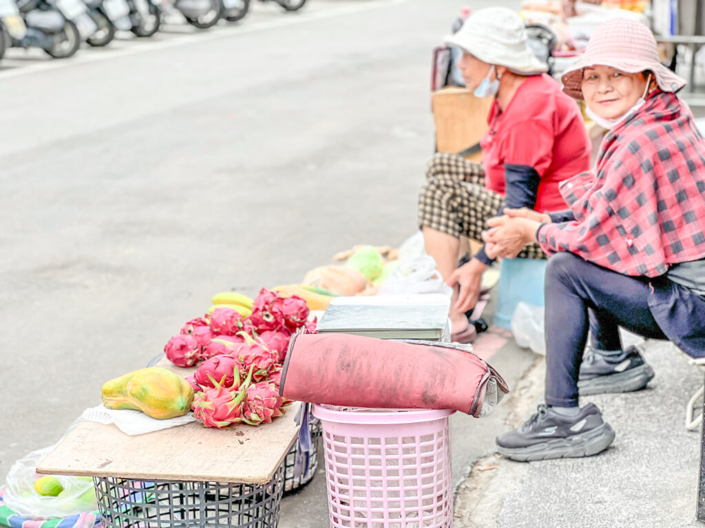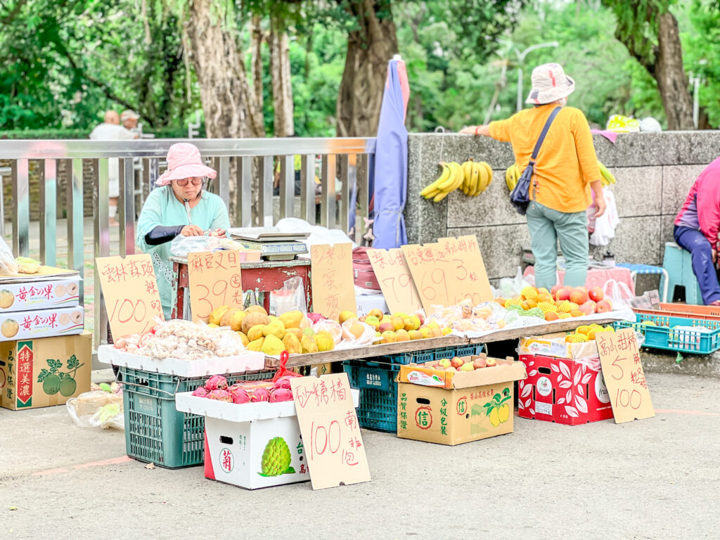 而在這個角落的公園旁,有條小巷可以直通林試所樹木園的側門,很多早起去慢跑或跳舞運動的人會走,微微有人潮,因為形成一街小市場,許多住在竹崎、番路的淺山人家會來小賣自家種植蔬菜水果,曾經訪問過的中埔木瓜粿阿姨,也說她朋友也是在這裡擺。